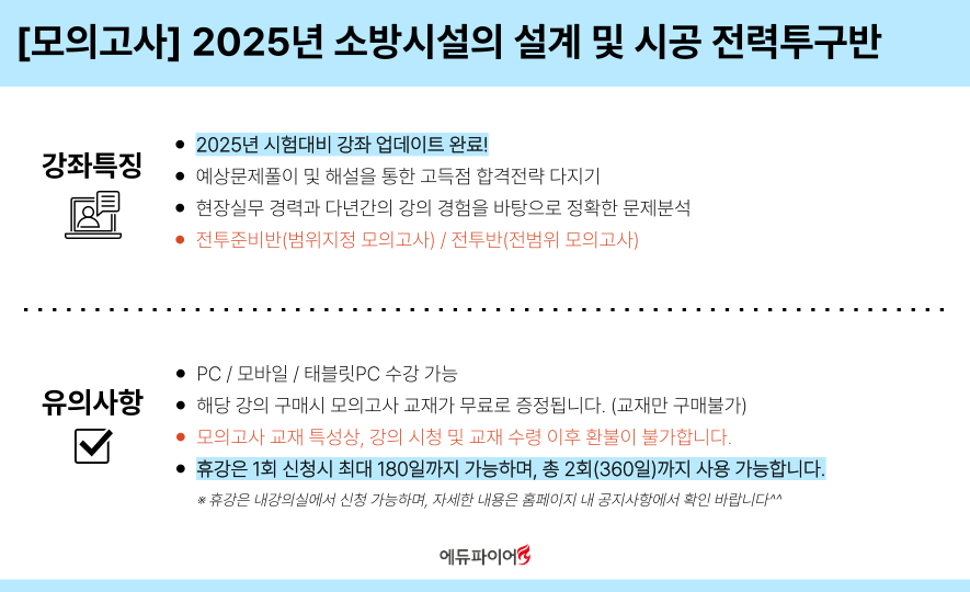 [모의고사] 2025년 소방시설의 설계 및 시공 전력투구반
